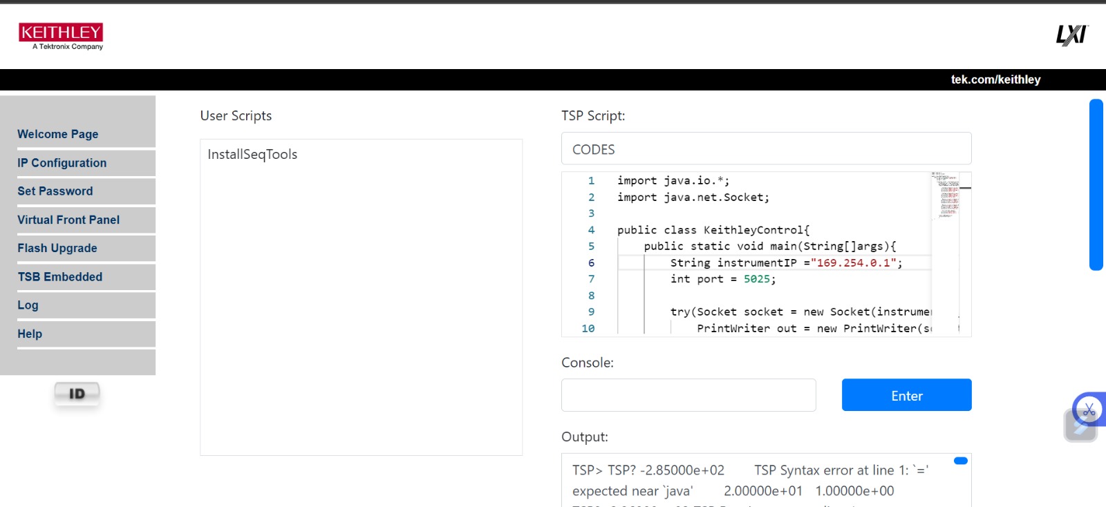 Hello everyone, just checking if we want to control channel A and B for the source meter 2604B with updated firmware. We will need to write the codes inside of the TSP Script ( as shown in the picture below right ? ) also, does anyone know why am i facing errors like what is typed below ?